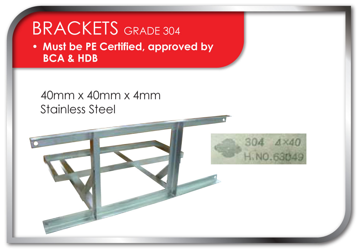 6) Stainless Steel Bracket (PE Certified) Approved by BCA (Not Included)